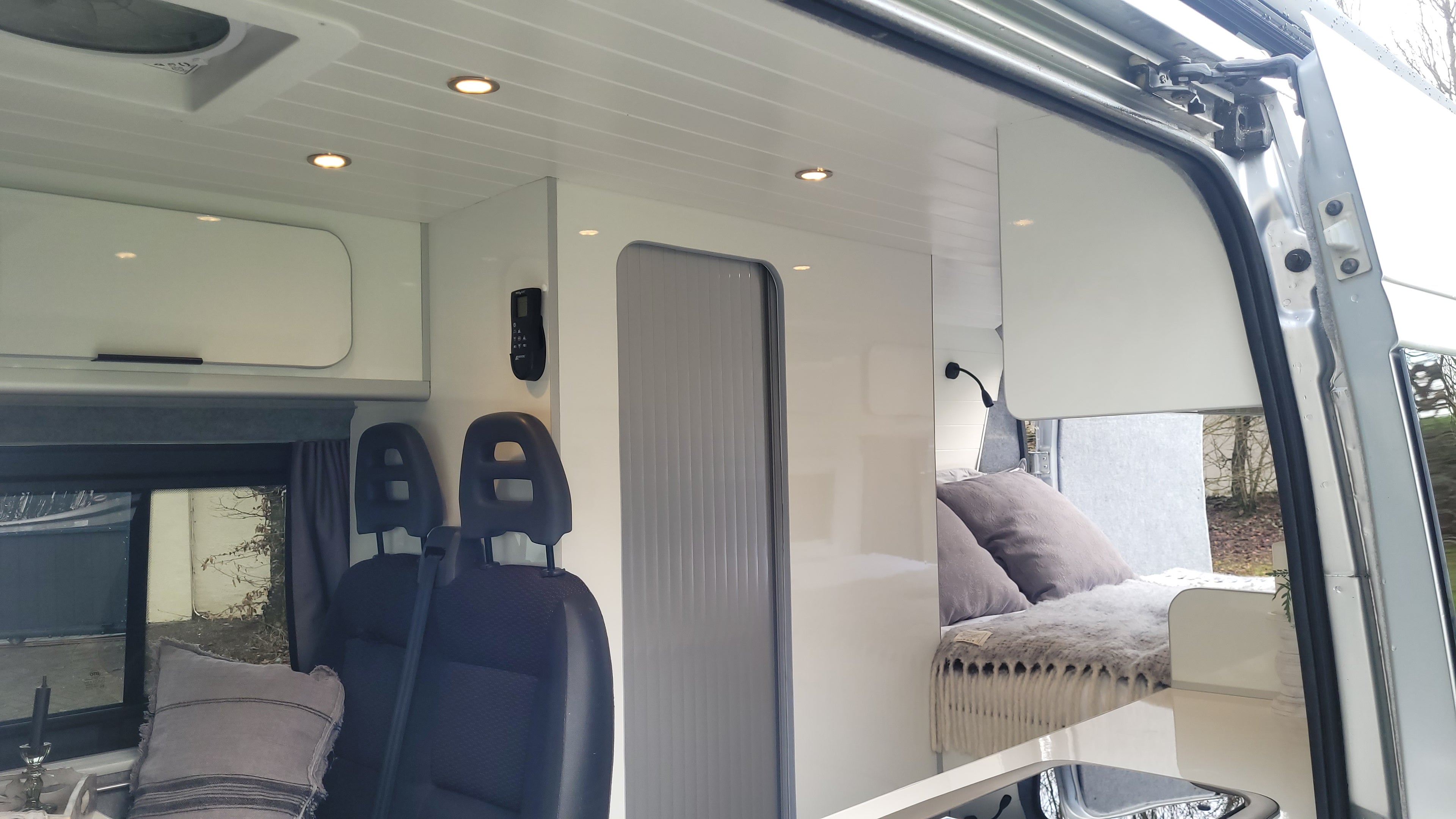 All our vans feature standard swivel seats for a compact layout, a full solar setup powering the fridge-freezer, cooker, and lights, plus a high-end roof fan and skylight for airflow and natural light.